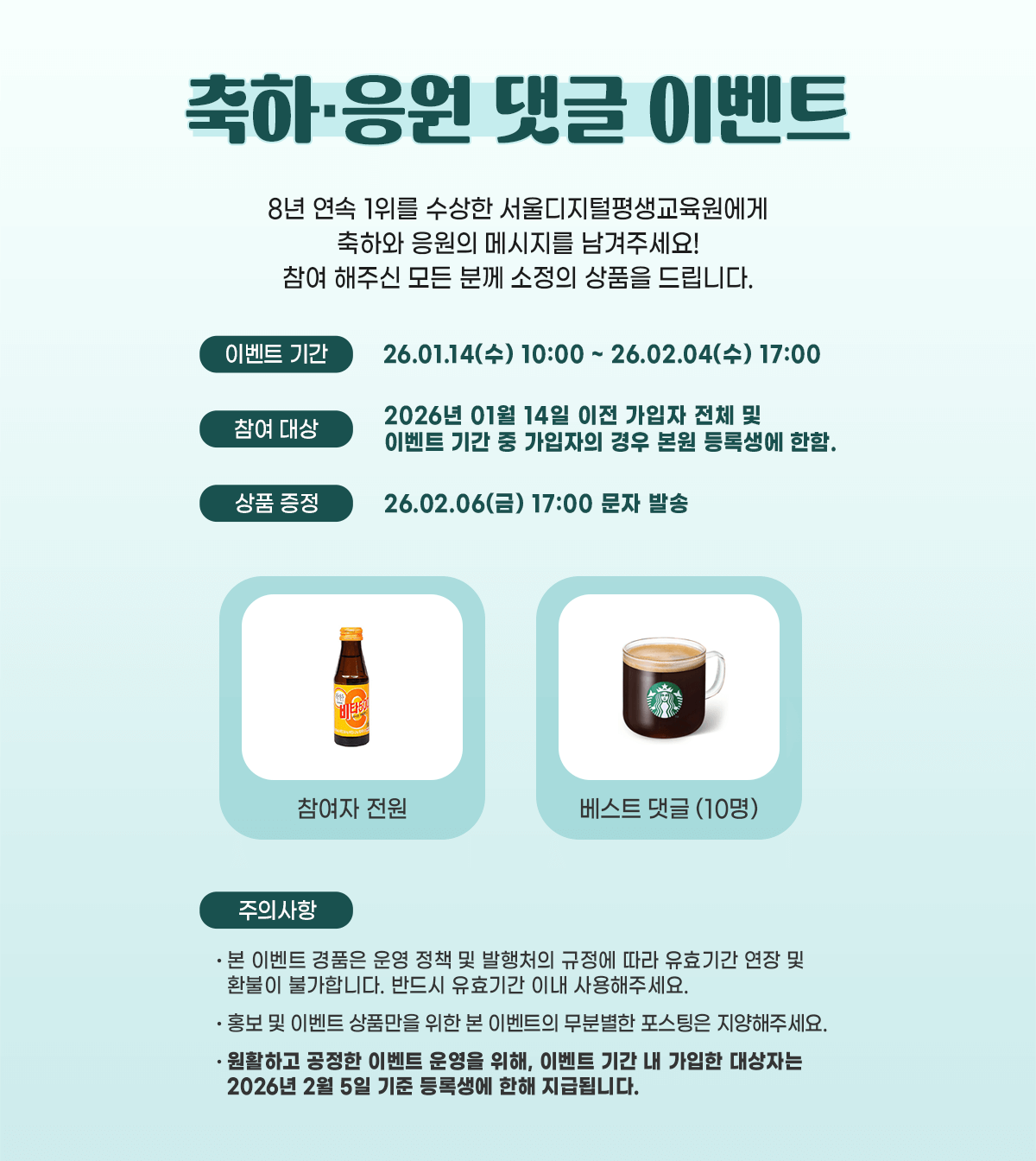 - ¼¿ïµðÁöÅÐÆò»ý±³À°¿øÀÇ Çѱ¹¼ÒºñÀÚ¸¸Á·Áö¼ö 8³â¿¬¼Ó 1À§¼ö»óÀ» Áø½ÉÀ¸·Î ÃàÇϵ帳´Ï´Ù!¿À·£½Ã°£µ¿¾È ÇнÀÀÚÀÇ ÀÔÀå¿¡¼ °í¹ÎÇÏ¸ç ½Å·ÚÇÒ¼öÀÖ´Â ±³À°È¯°æ°ú ü°èÀûÀÎ Ä¿¸®Å§·³À» ¸¸µé¾î¿Â ³ë·ÂÀÌ 8³â¿¬¼ÓÀ̶ó´Â °ªÁø°á°ú·Î À̾îÁ³´Ù°í »ý°¢ÇØ¿ä!º¯ÈÇÏ´Â ±³À°È¯°æ¼Ó¿¡¼µµ ²ÙÁØÈ÷ ³ôÀº¸¸Á·µµ¸¦ À¯ÁöÇØ¿Â ¼¿ïµðÁöÅÐÆò»ý±³À°¿øÀÇ Àú·Â°ú ÁøÁ¤¼º!¾ÕÀ¸·Îµµ Æò»ý±³À°ÀÇ µçµçÇÑ µ¿¹ÝÀڷμ ¹è¿òÀÇ ±âȸ¸¦ ¿¾îÁֽñæ ÀÀ¿øÇÒ°Ô¿ä!´Ù½ÃÇѹø 8³â¿¬¼Ó 1À§¸¦ Áø½ÉÀ¸·Î ÃàÇϵ帳´Ï´Ù!