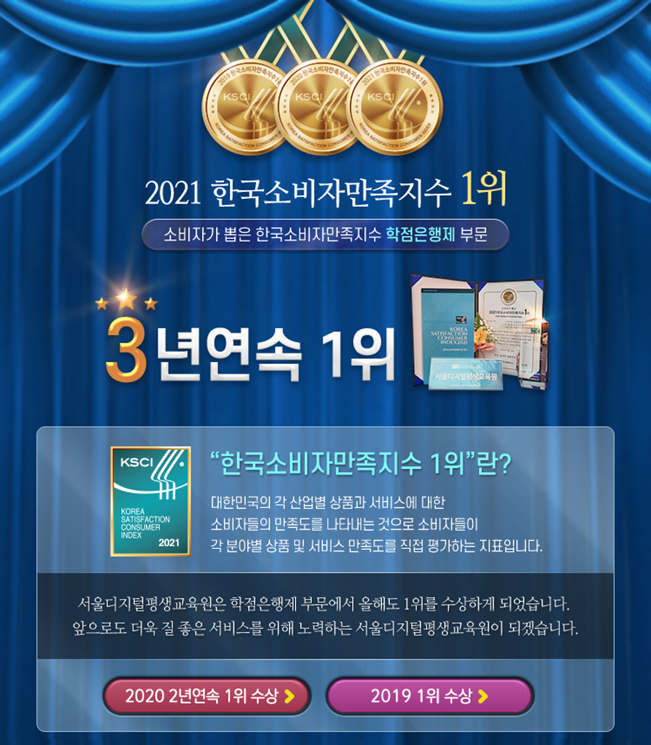 - ¼ : ¼¿ïµðÁöÅÐÆò»ý±³À°¿øÀÇ Çѱ¹¼ÒºñÀÚ¸¸Á·Áö¼ö 3³â¿¬¼Ó 1À§¸¦ Áø½ÉÀ¸·Î ÃàÇÏÇÕ´Ï´Ù~